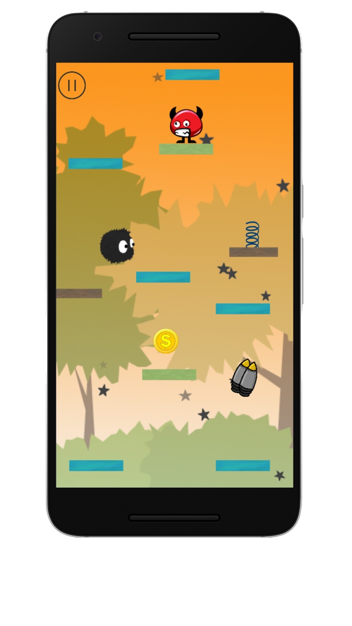 Control a furry ball and soar through the skies... How high can you jump? Bounce from platform to platform and help him to collect coins. Be careful as you'll meet falling platforms, spikes and scary monsters. Hop on springs in between to soar higher & collect jetpacks to fly further. Fun and addictive! How to play: Tilt your phone to move left or right